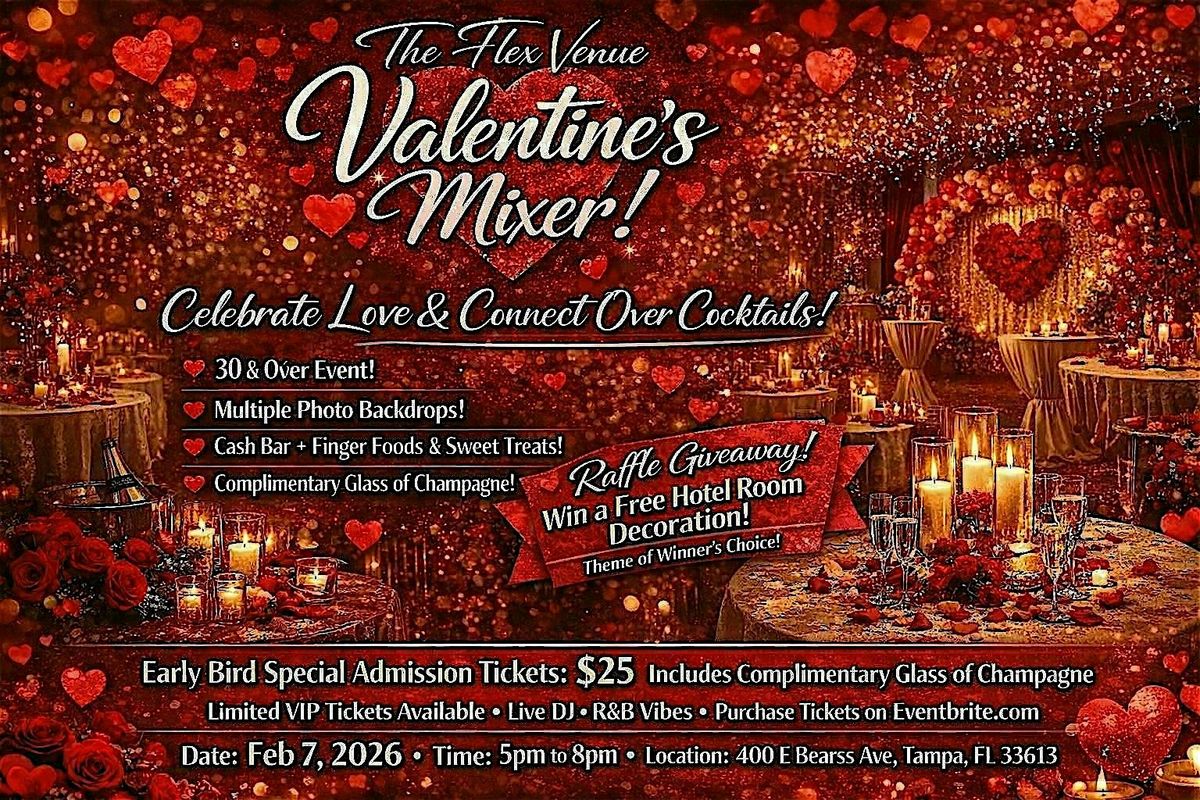 Welcome to The Flex Venue Valentines Mixer! Get ready for a night of great vibes with our live DJ spinning the R&B tunes, Create unforgetable memories with our multipule backdrops, A chance to win a Hotel room decoration by entering the raffel. Photographers, Videographers, Caterers, Bakers, Venders etc. are all welcome! Join us at 400 E Bearss Ave on February 7, 2026 at 5:00 PM (Eastern Time). Don't miss out! Make sure to follow us on IG and FB @theflexvenue
