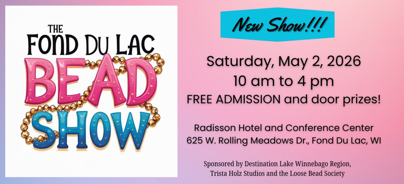 We’re thrilled to announce a brand new bead show coming to Fond du Lac, WI! Join us for the inaugural Fond du Lac Bead Show on Saturday, May 2, 2026, from 10 AM – 4 PM at the Radisson Hotel and Conference Center in Fond du Lac, WI.