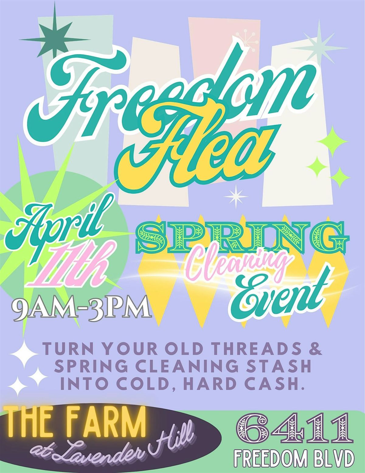 Join us on April 11th 9-3 for the Freedom Flea! This spectacular event brings together a vibrant mix of local vendors and folks clearing out treasures from their spring cleaning. Whether you are hunting for unique deals, selling your gently used goodies, or enjoying the sunny meadow vibes, there is something for everyone!