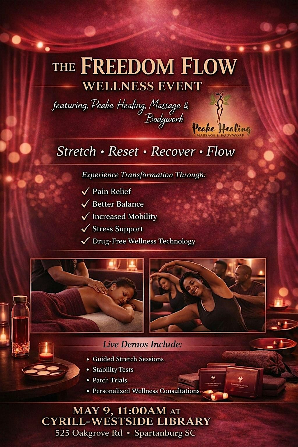 Get ready to dive into an experience of relaxation, movement, and good vibes! This in-person event is all about connecting with your body and mind through stretching, implementing Superpatch, mindful moments, and uplifting community energy. Whether you’re an avid stretcher, or could stand to use some help & motivation with implementing stretch into your life, this Freedom Flow Wellness Event is the place for you to be. Come as you are and leave feeling refreshed and inspired!