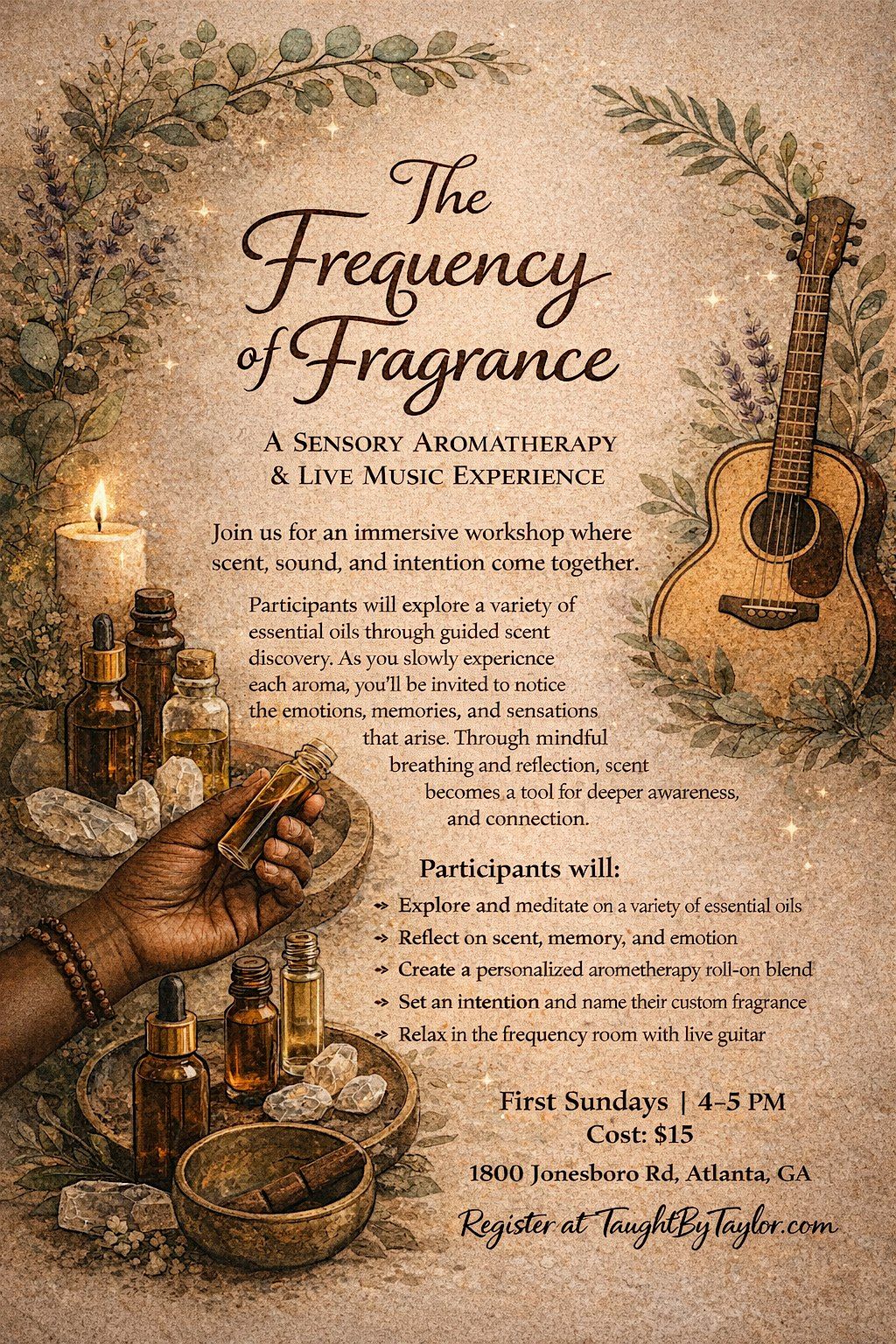 The Frequency of Fragrance is a guided aromatherapy workshop where we slow down and explore the energetic and emotional resonance of essential oils and botanical scents. Through mindful smelling, reflection, and conversation, we tune into how fragrance influences mood, memory, and the nervous system.