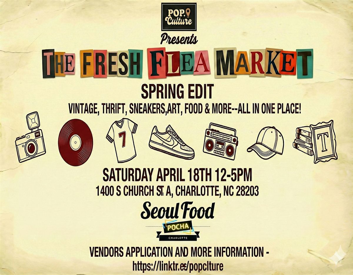 Follow us on Instagram @Pop.CLTure for vendor announcements. #FreshFleaCLT #PopCultureCLT #CharlotteVintage #SouthEndCLT #EarthDay2026