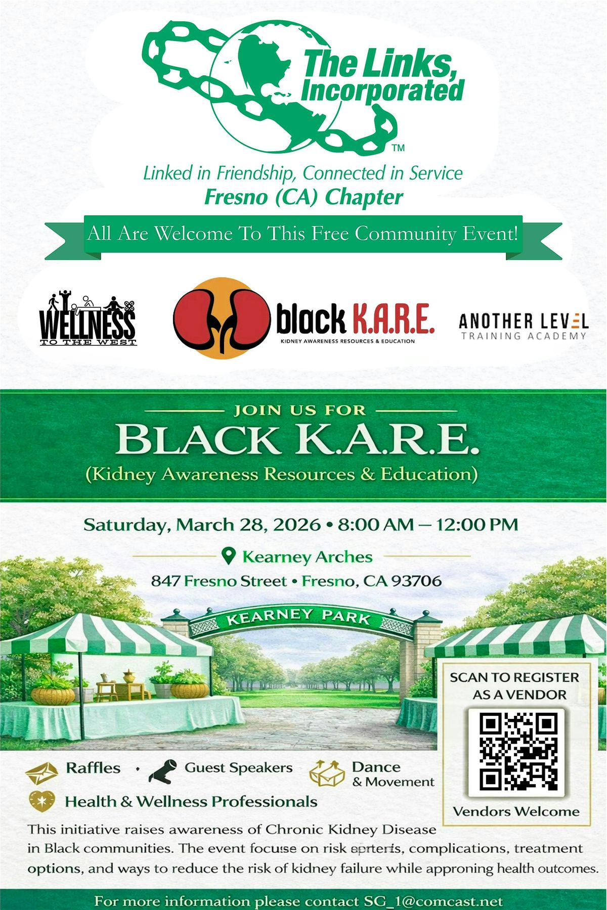 Get ready for an awesome in-person event brought to you by The Fresno (CA) Links! Join us for Black K.A.R.E, where community, culture, and connection come together for a memorable experience. Don't miss out on the fun—come hang out, learn, and celebrate with us in Fresno!