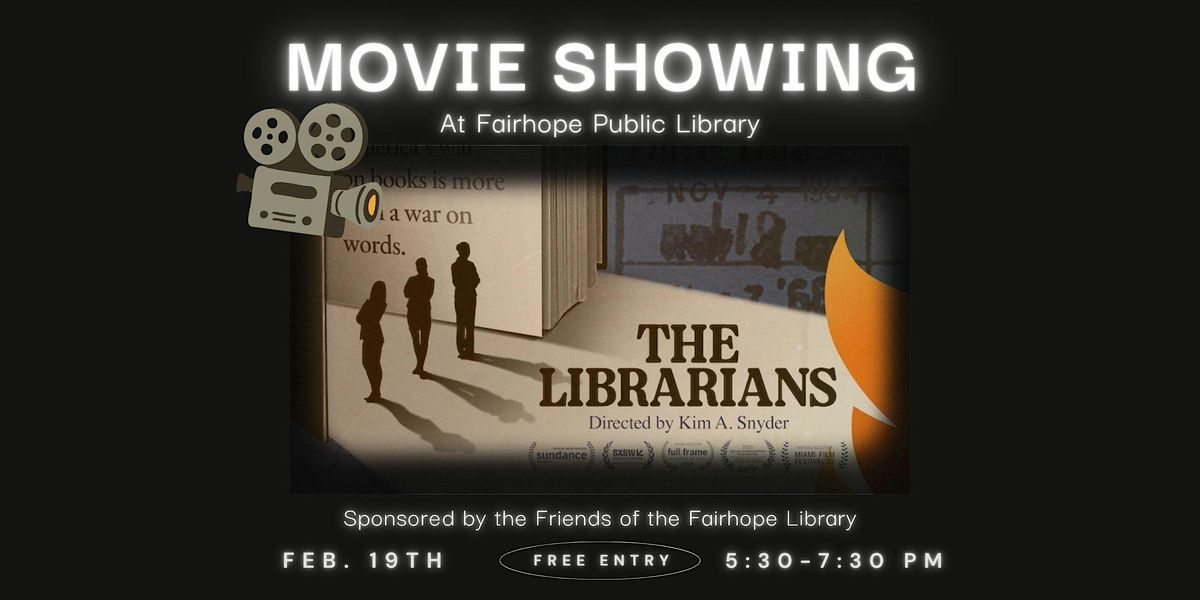 If you missed seeing this film at the Fairhope Film Festival, now is your chance! In this 2025 release by Kim A. Snyder, librarians unite to combat book banning, defending intellectual freedom on democracy's frontlines amid unprecedented censorship in Texas, Florida, and beyond. Doors open at 5 pm and the film begins at 5:30 pm. The film's runtime is one hour and thirty minutes. There will be a panel after the film. Please give a big thank you to the Friends of the Fairhope Library who are sponsoring this showing.