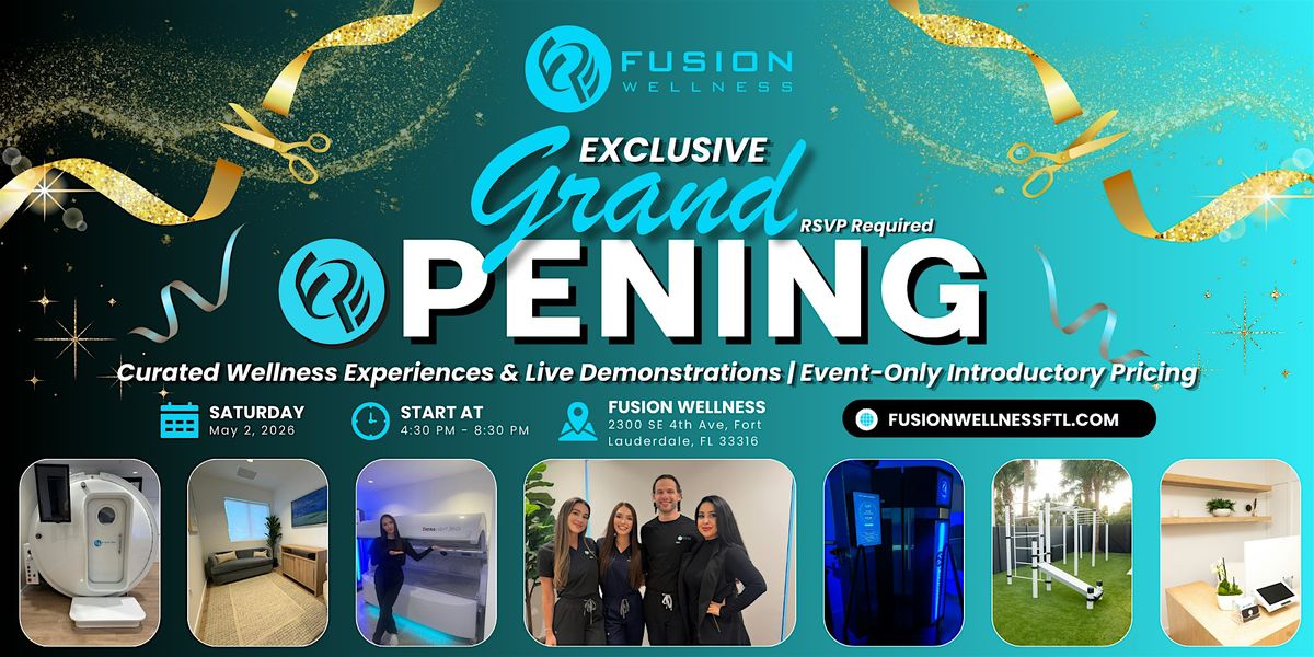 Join us for the grand opening of Fusion Wellness — a boutique recovery and wellness clinic in Fort Lauderdale designed to help you recover faster, feel better, and perform at your best.