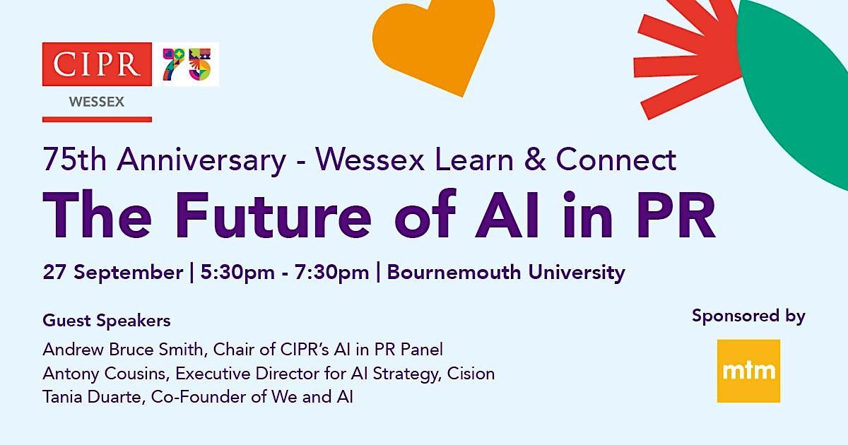 This in-person event at Bournemouth University is part of CIPR Wessex’s Learn & Connect Series, and it will also celebrate the CIPR’s 75th Anniversary.
