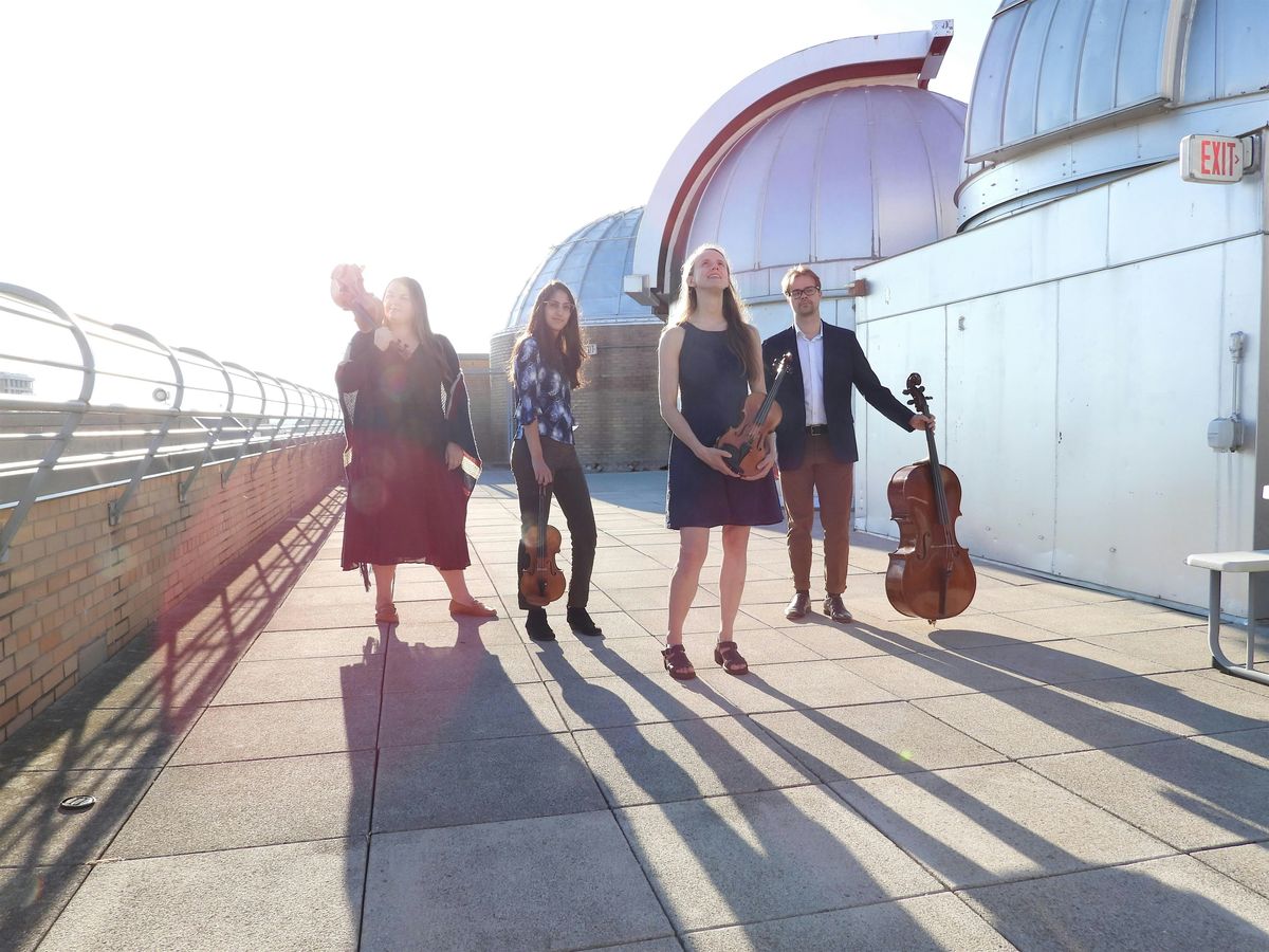 The Galaxy Quartet is a Madison-based string quartet featuring Maynie Bradley and Hillary Hempel on violin, Kayla Schultz on viola, and Alex Ozasky on cello. Performing throughout the Midwest, they curate engaging programs that blend the classical with the modern, aiming to spark curiosity and reflection through their performances.