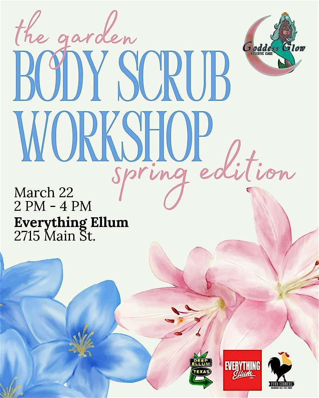 Join Goddess Glow Holistic Care for The Garden: Spring Edition | Body Scrub Workshop— a girls day experience centered around self-care, creativity, and community.
