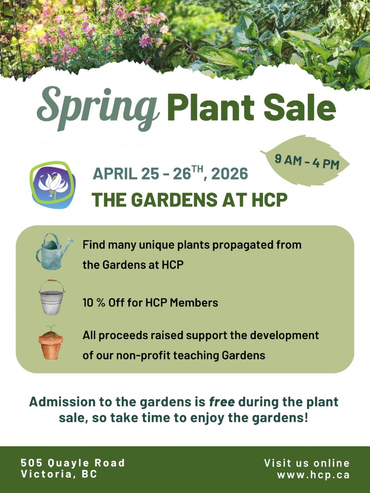 The Horticulture Centre of the Pacific (HCP) is hosting its annual Spring Plant Sale on April 25th and 26th, 2026, from 9:00 AM to 4:00 PM.