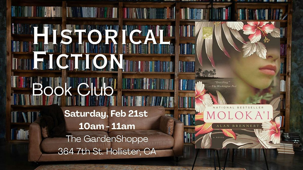 Many have expressed interest in a book club specifically about Historical Fiction. So many choices, so many histories to delve into. We are starting with a book called Moloka'i by Alan Brennert. After that, the group can decide. This will take place on Saturday mornings and everyone is welcome. Beverages will be available or you can bring your own. Just no booze. We will try to keep it to an hour, but will see how that goes. We may hold this inside, depending on the weather.