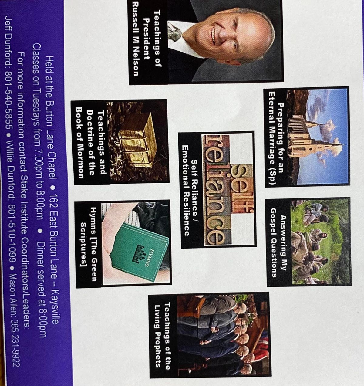 Come and see! Join us for classes on forgiveness, hymns, prophets and more! Dinner is served after classes at 8pm! We hope you can come!