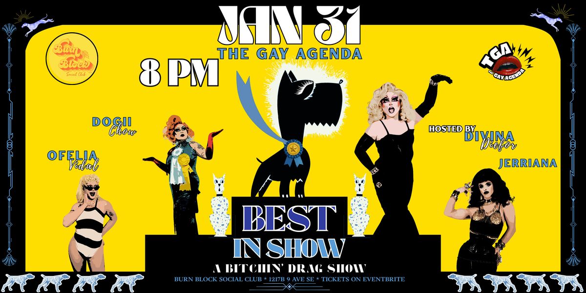 Join your host Divina Diefor at Best In Show! A dog show themed drag show! Featuring some of Calgary's best talent, Ofelia Vidal, Dogii Chow, & Jerriana. Come watch these hell hounds strut their stuff and compete for best b*tch.