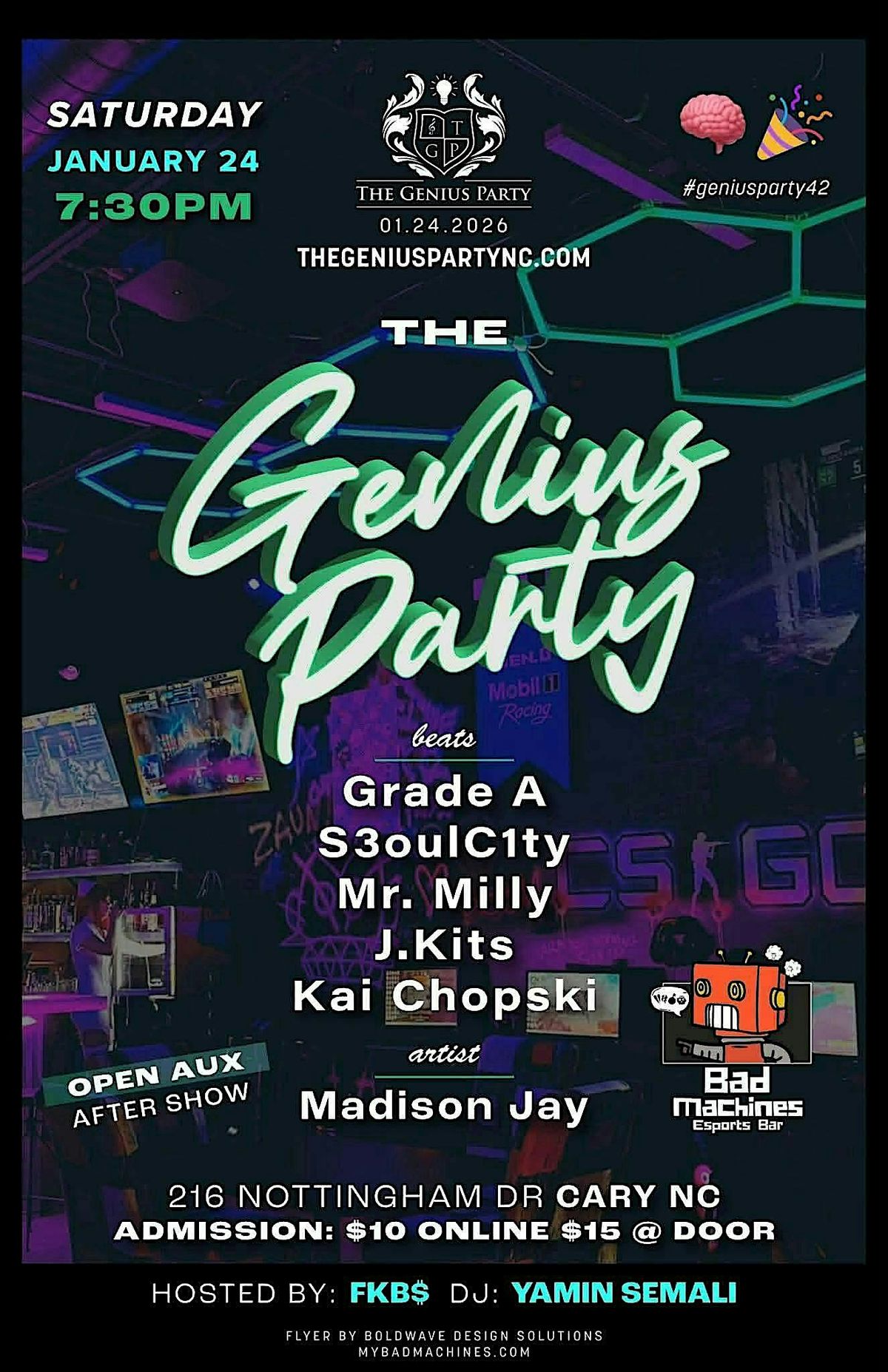 The Genius Party is a Hip-Hop showcase for Beatmakers, Artists, and DJ’s in North Carolina and Beyond…!!