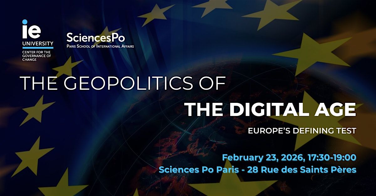 Join us on February 23, 2026 for a high-level discussion to explore what it will take for Europe not only to secure its role in a contested digital world, but also to shape the social contract that will underpin its economic and democratic future. The event is co-organized by the Center for the Governance of Change (CGC) at IE University and the Paris School of International Affairs at Sciences Po.