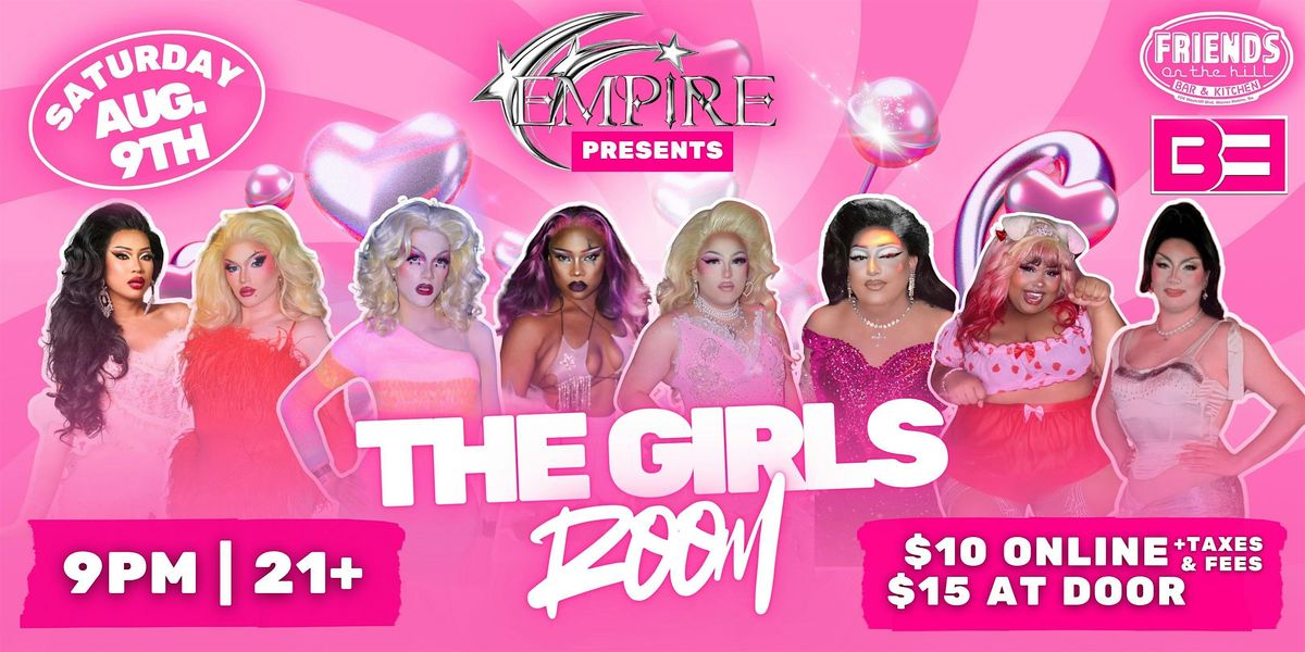 This is The Girls Room, live from Friends on the Hill! Grab your besties & put on your cutest outfits, because we’re having a girls night out with The Empire. Come out for the girliest drag show of all time, and stay after to dance the night away with your favorite queens.