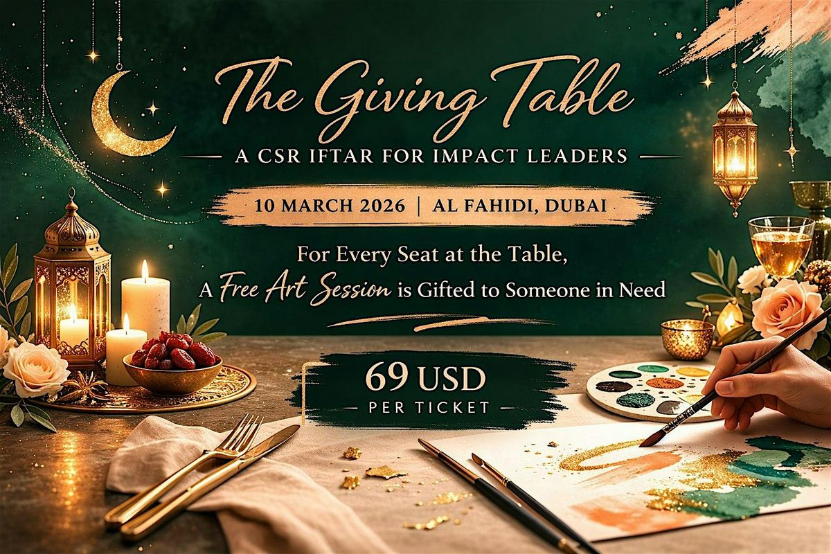 CSR Iftar for HR & Impact Leaders. Each ticket sponsors a free art session for someone in need. Limited seats. 10 March | Dubai.About this Event