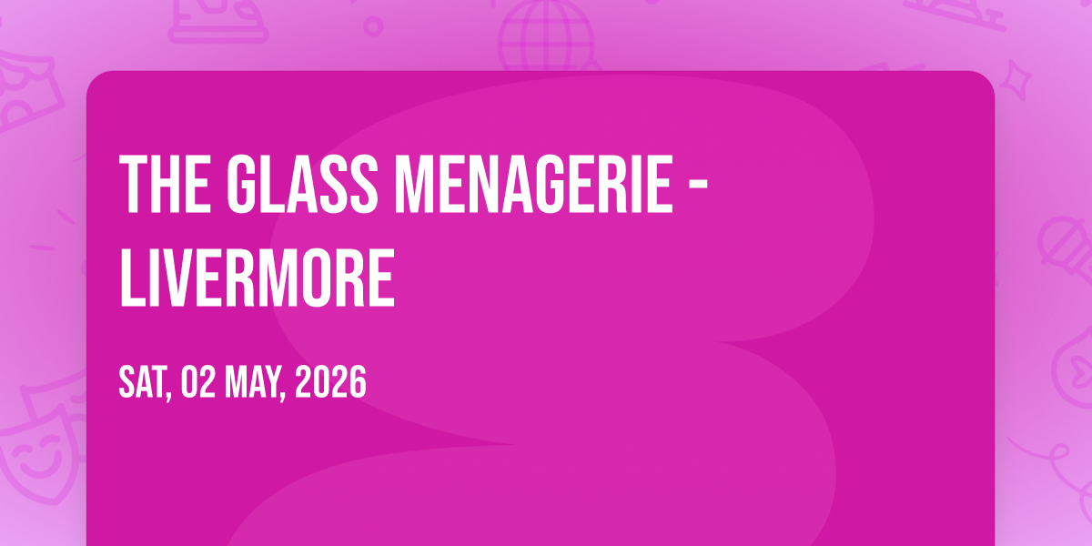 📍 Location: 37.6833, -121.768🌟 Be part of history at The Glass Menagerie - Livermore, an extraordinary gathering that will captivate your imagination! 🏛️ The prestigious Bankhead Theater - Livermore in Livermore, CA sets the stage for an unforgettable experience on May 4th, 2026 at 02:30 AM. ✨ They are bringing together the finest elements of entertainment and innovation to create moments that will take your breath away. From the moment you arrive, you'll be immersed in an atmosphere of wonder and excitement. 🎯 This carefully planned event ensures every guest experiences something truly special. 🎊 Early booking is recommended for this must-attend event of the season!