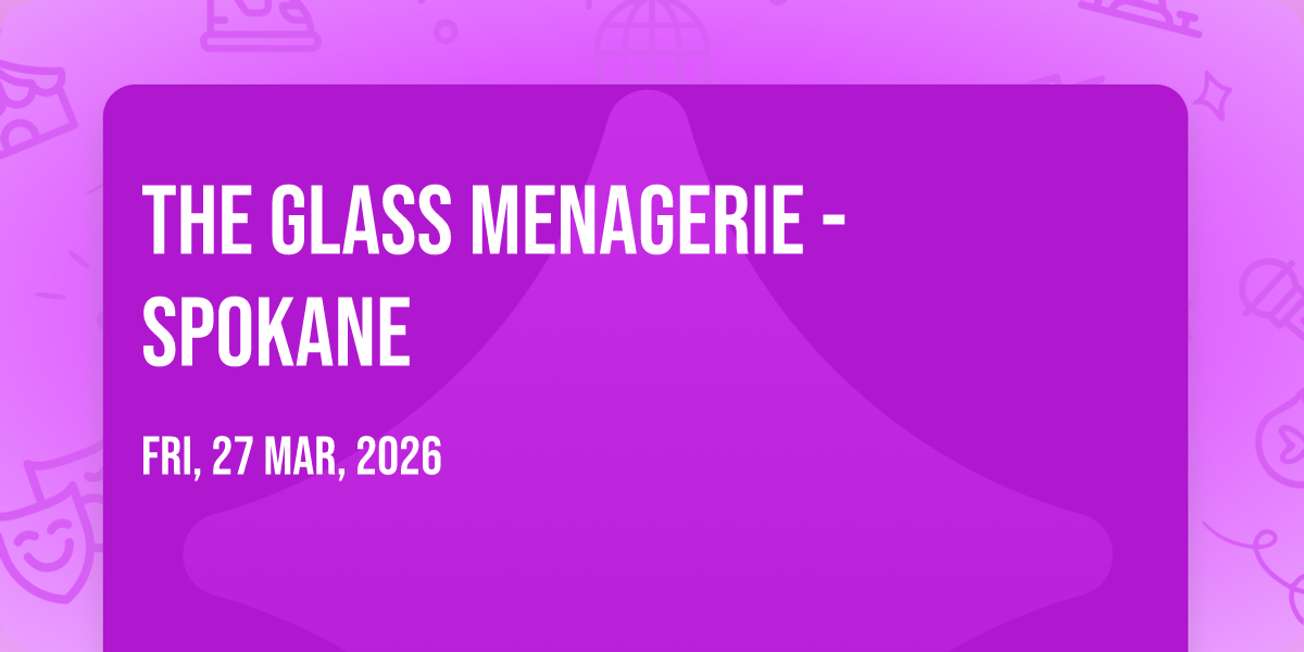 π Location: 47.667, -117.421β¨ Discover the extraordinary at The Glass Menagerie - Spokane, where magic meets reality in ways you've never imagined! ποΈ Set in Spokane Civic Theatre nestled in bustling Spokane, WA, this event promises to be a landmark occasion. π Taking place on April 4th, 2026 at 02:30 AM, it's going to create an atmosphere where every moment becomes a cherished memory. π Immerse yourself in an experience crafted with attention to every detail, designed to surprise and delight at every turn. They have worked tirelessly to ensure this event exceeds all expectations, bringing together elements of entertainment, innovation, and pure joy. π Don't miss your chance to be part of this remarkable journey!