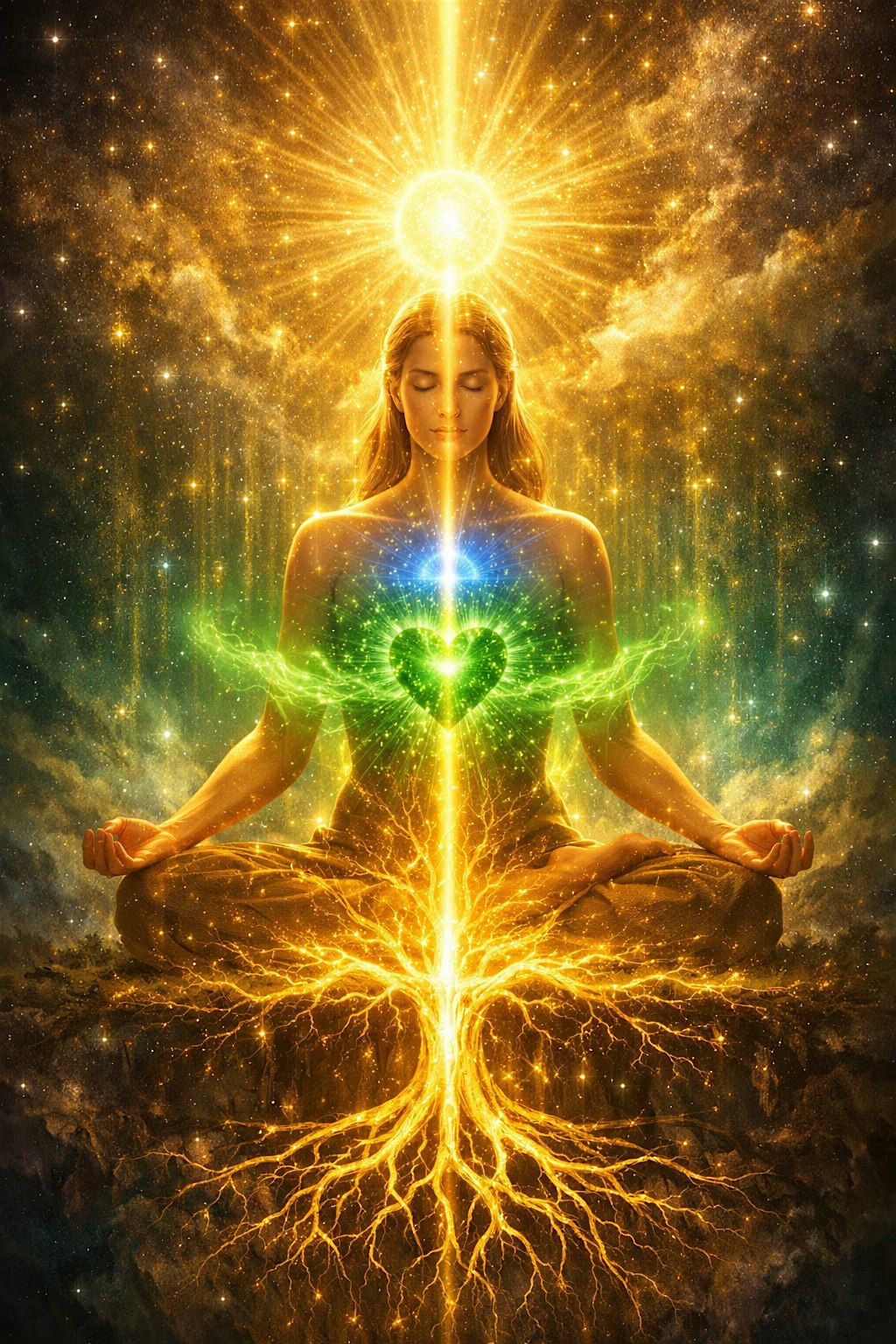 • Golden Root & Central Channel - Anchoring the Golden Tree Template into the root and drawing light through the central axis of the body.