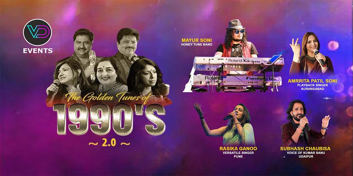 VD Events Music Entertainment presents a Hindi music concert playing superhit Bollywood songs with playback singers including Amrita Patil Soni, Rasika Ganoo, Sameer Vijay Kumar, and Subhash Chaubisa.