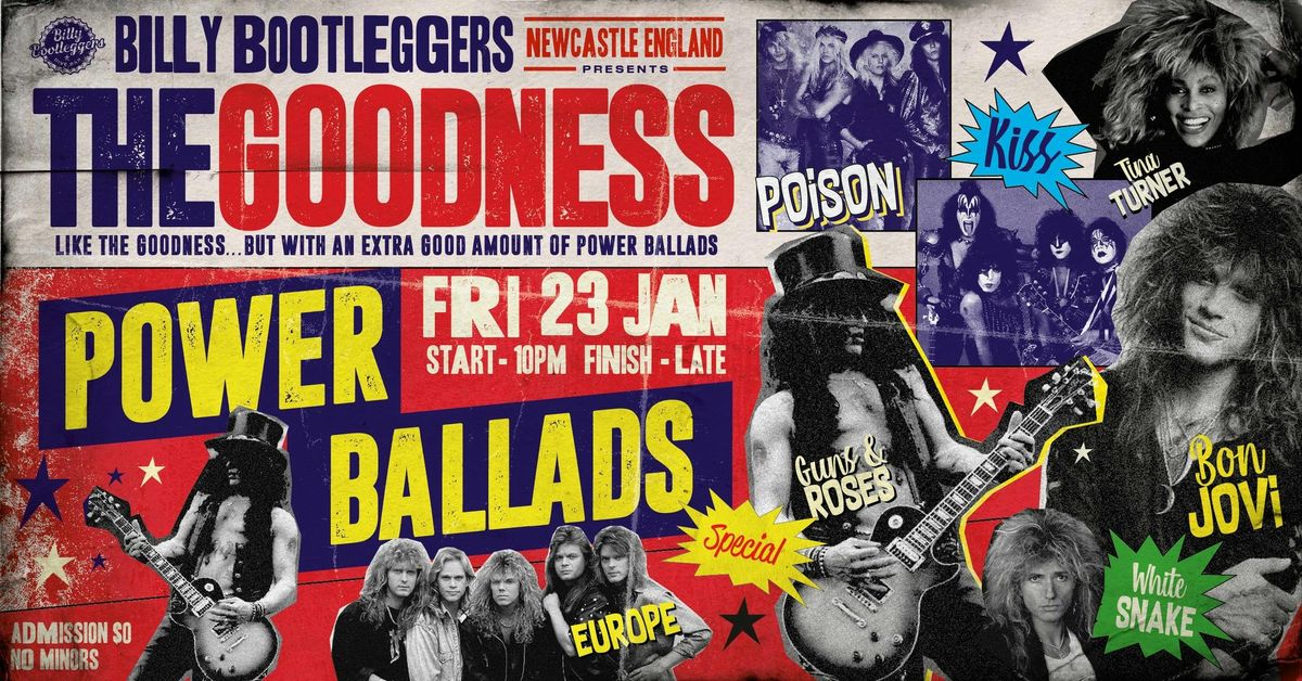 Expect to hear the biggest power ballad hits from..... POISON / GUNS N' ROSES / KISS / EUROPE / BON JOVI / TINA TURNER / WHITE SNAKE / AND LOADS MORE!!!