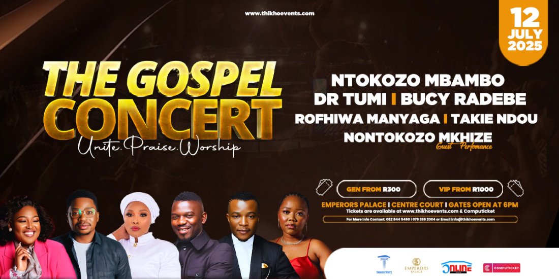 Johannesburg South Africa – Thikho Events proudly brings you ‘The Gospel Concert’ an extraordinary night of worship praise and unity. Scheduled for Saturday 12 July 2025 this revival showcase will take place at the prestigious Emperors Palace Centre Court promising an unforgettable spiritual experience for gospel music lovers.