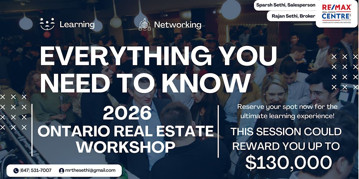 Thinking about buying a home or investing in real estate in the GTA after hearing the new HST rebate announcement? Whether you're a first-time buyer, seasoned investor, or just curious about the market, join us for a casual and informative Real Estate Workshop & Networking Event, complete with complimentary snacks.