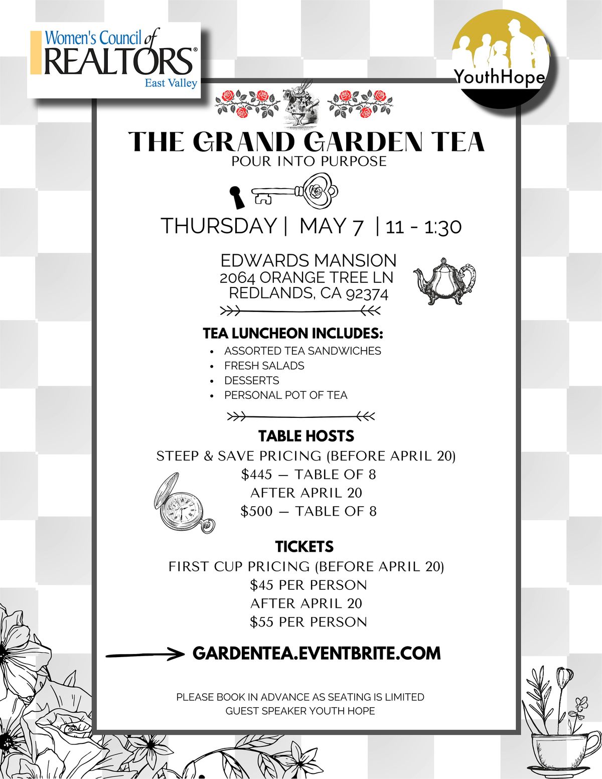Set in the beautiful Edwards Mansion in Redlands, this whimsical garden-inspired tea brings together community members, real estate professionals, and local supporters for a meaningful fundraiser benefiting YouthHope, an organization dedicated to supporting youth experiencing homelessness and hardship.