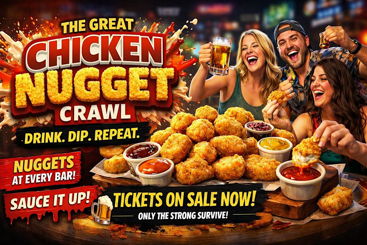 We’re not even going to try to justify this…We’re taking over the city for a full-on Chicken Nugget Crawl! Hitting multiple bars, throwing back drinks, and eating nuggets all night long. Yes. It’s exactly what it sounds like. And yes… it’s going to be ridiculous.