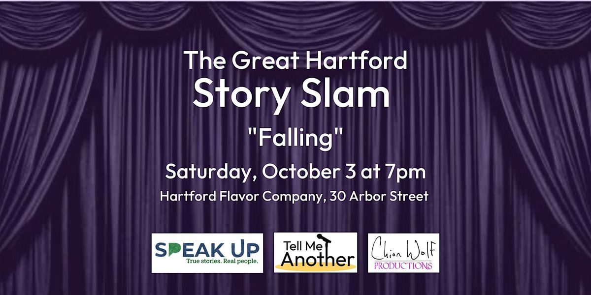 Get ready, Hartford-area storytellers! Tell Me Another, Speak Up, and Chion Wolf Productions are reuniting to present the Great Hartford Story Slam again this year. Join producers Terry Wolfisch Cole, Matthew and Elysha Dicks, and Chion Wolf, for an evening of stories around the theme "Falling."