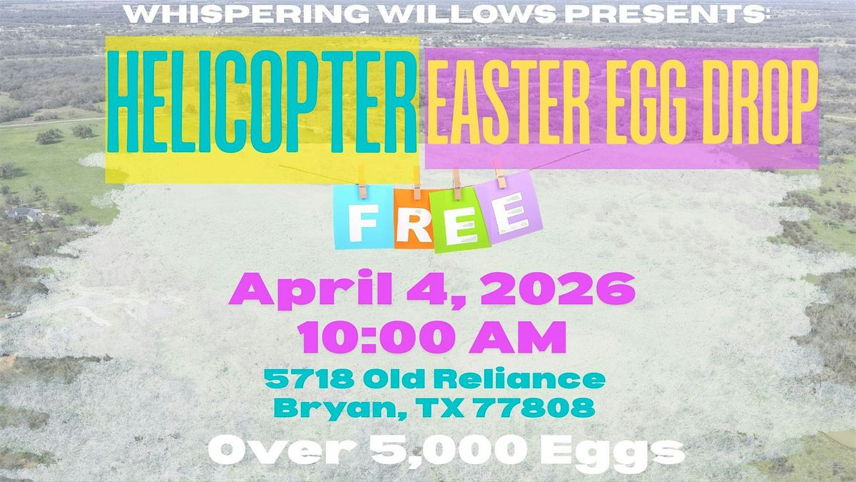 Join us on April 4 at 10:00 AM for a FREE Helicopter Easter Egg Drop at Whispering Willows in Bryan!