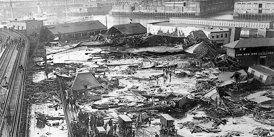 Join Mike Manning of the Friends of the Boston Harborwalk (FBHW) for a combination virtual tour and walking tour (weather permitting) to commemorate the 107th anniversary of the Great Molasses Flood of 1919. We will meet in the Leventhal Center Room (LCR) at the Boston Harbor Hotel located at 70 Rowes Wharf in Boston's Wharf District. The LCR is located on the ground-level of the hotel - through the large exterior arch. Once through the arch, turn left and the LCR is on your left. The first hour will be held in the LCR room. If the weather cooperates, we'll walk (about 18 minutes) to the GMF site for 30 minutes or so. Please dress appropriately.The Great Molasses Flood of 1919 shattered Boston's North End neighborhood on an unseasonably warm winter afternoon in January, 1919. After a brief overview of other disasters that have befallen Boston over the years, the discussion will focus on how and why the molasses tank came to be installed in one of Boston's most densely populated neighborhoods - and how poor design and construction oversight, along with a lack of maintenance, led to its eventual failure.All participants must register in advance as space is limited and we want to be able to contact you in case of inclement weather. While the tour is free - donations are accepted in order to support our mission.The Friends of the Boston Harborwalk is a volunteer group affiliated with Boston Harbor Now. The group meets monthly to create awareness, promote public enjoyment, and foster local stewardship of Boston’s 43-mile Harborwalk. For more information on FBHW membership, please contact Mike Manning, Chair, at [email protected].