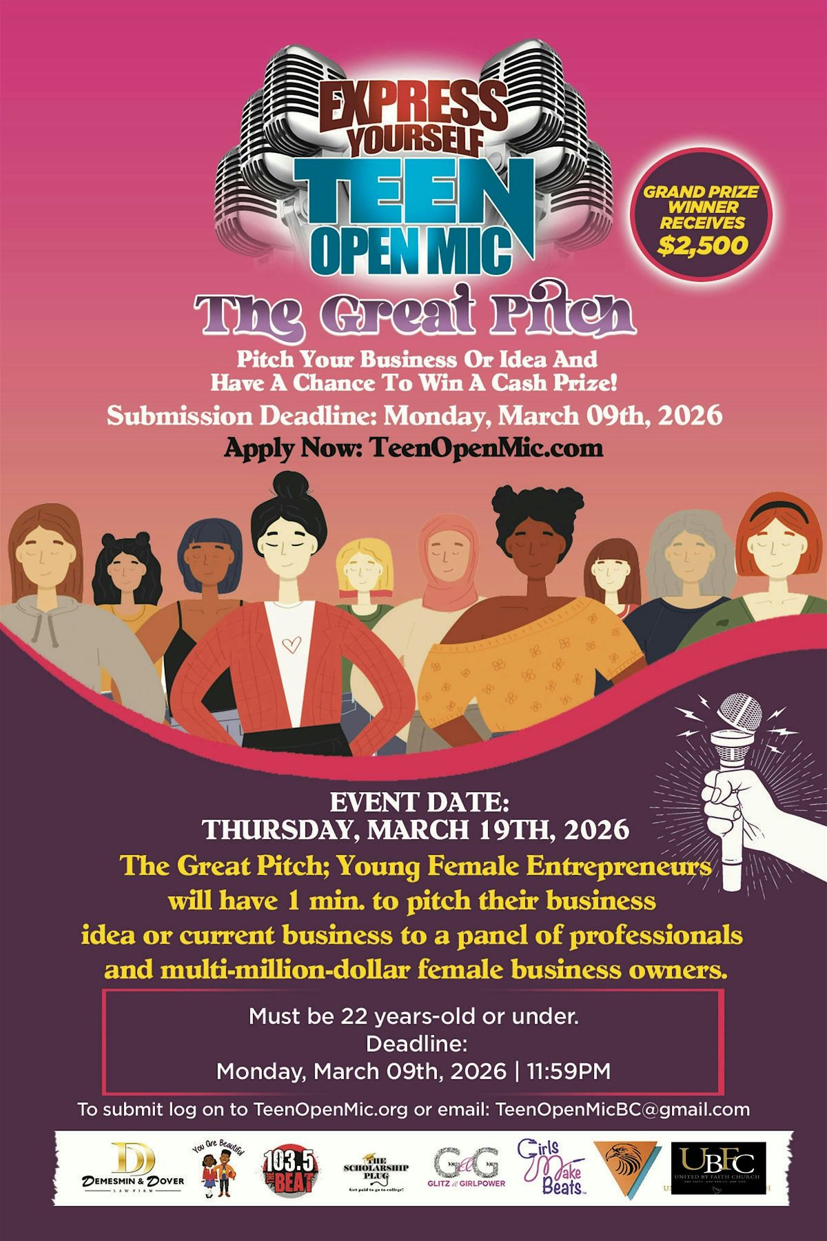 The Great Pitch; Young Female Entrepreneurs will have 1 min. to pitch their business idea or current business to a panel of professionals an