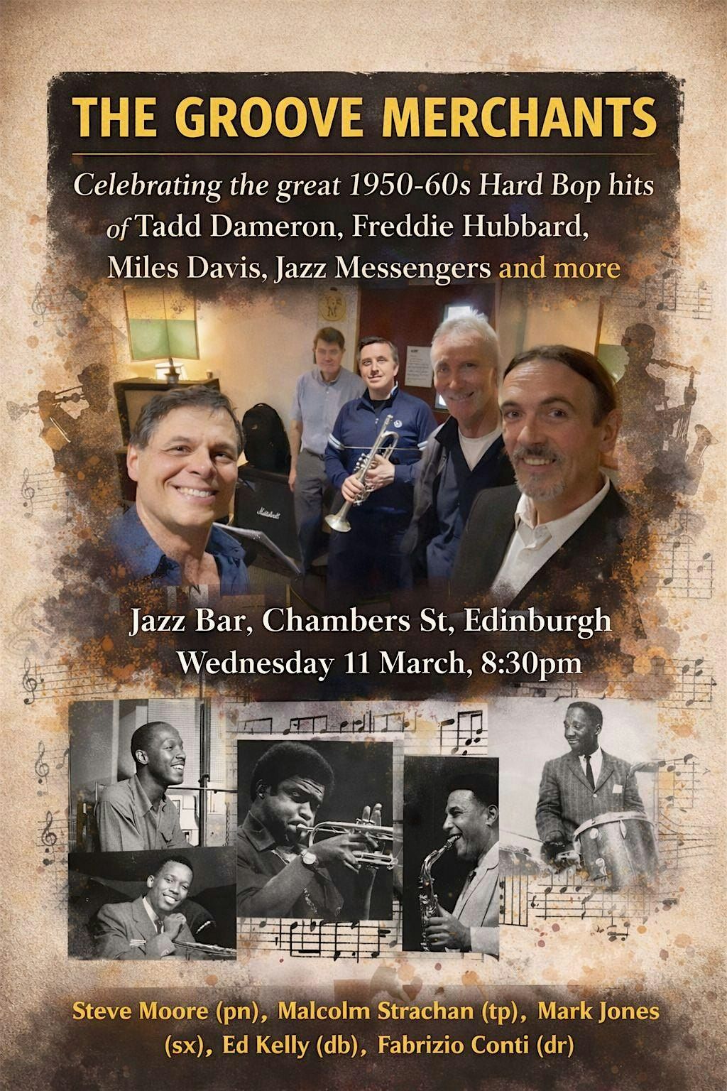 The Groove Merchants will play compositions and arrangements of Tadd Dameron, Freddie Hubbard, Miles Davis, The Jazz Messengers and more - in a tribute to one of the most joyful and progressive eras in jazz.