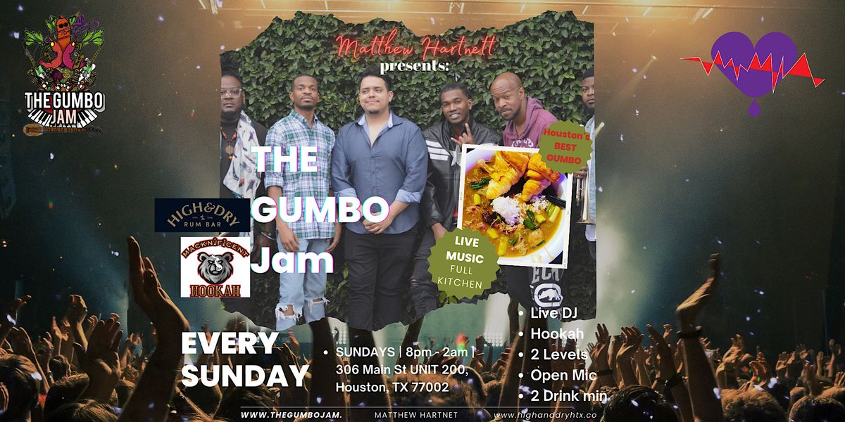 The Gumbo Jam is a Louisiana inspired jam session with a serious food menu Hosted by Matthew Hartnett. This session is home of all things Hip-Hop and Jazz. Singers, rappers, poets, musicians and of course horn players from all over come to party in the loose laid back vibe of Matthew Hartnett & The Gumbo All-Stars. If you like to dance, eat good food, and hear great music, this is the place.