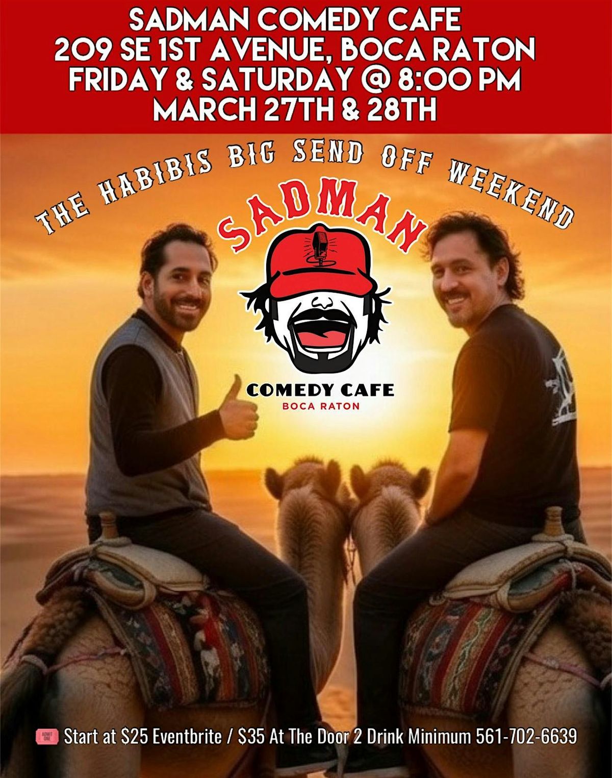 This is the final weekend of shows at The Sadman Comedy Cafe before we move. 2 Shows that will be closed out by Nadeem Awad and David Sadman. This show brings together some of Florida’s funniest comedians, along with surprise drop-ins you genuinely won’t see coming. Every set feels a little different, a little unexpected — and that’s what makes it so good.