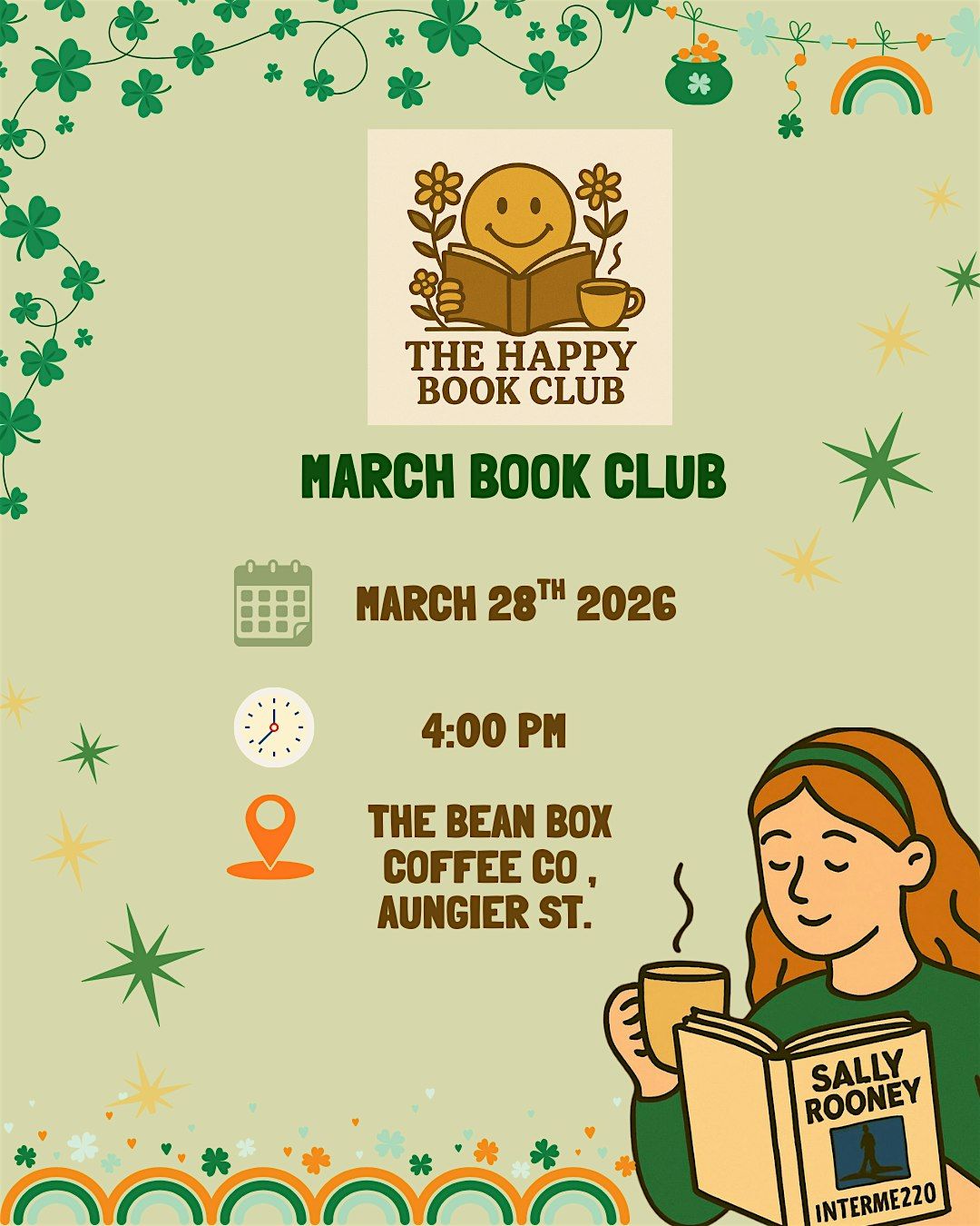 Join The Happy Book Club on March 28th at 4PM at Bean Box Coffee Co to discuss Intermezzo by Sally Rooney ☘️