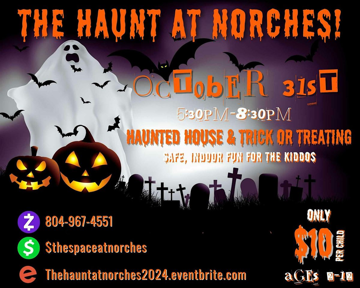 Come celebrate the awesomeness of Halloween without the worry of weather, walking in a neighborhood or other nuances that may arise. The Haunt at Norches will be the Halloween event of the year for the kiddos, all in one place. Your little ones can walk through an enchanted, haunted house while having a traditional trick or treating experience. To help even more, each child registered will receive a light *dinner snack so they may eat a piece of candy or two on the way home.