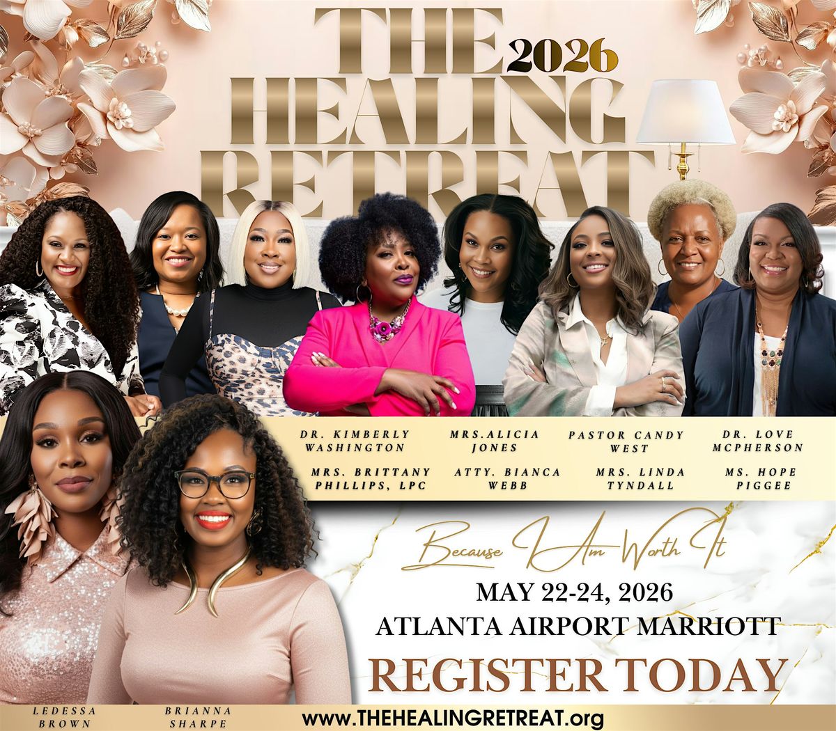 Welcome to The Healing Retreat: 2026 Women's Empowerment! Join us for a transformative experience at the Atlanta Airport Marriott. Connect with like-minded women, participate in empowering workshops, and rejuvenate your mind, body, and soul. This event is a unique opportunity to focus on self-care, personal growth, and building a supportive community. Don't miss out on this chance to elevate your life and empower yourself for the future!