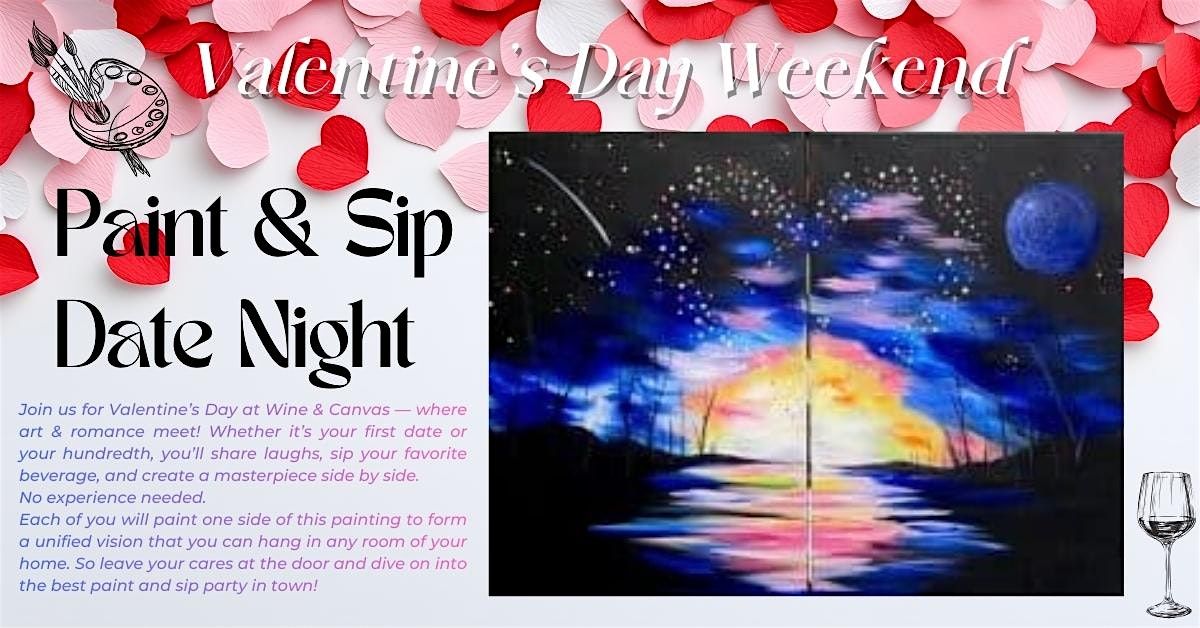 Grab your seat today for this wonderful double-sided painting “The Heart Constellation” led by the talented, local artist Amanda! Unwind, sip, and get creative together! Join us for Date Night at Wine & Canvas — where art and romance meet at one of the unique things to do in Columbus. Whether it’s your first date or your hundredth, you’ll share laughs, sip your favorite wine, and create a masterpiece side by side. No experience needed. Each of you will paint one side of this calming painting to form a unified vision that you can hang in any room of your home. So leave your cares at the door and dive on into the best paint and sip party in town!