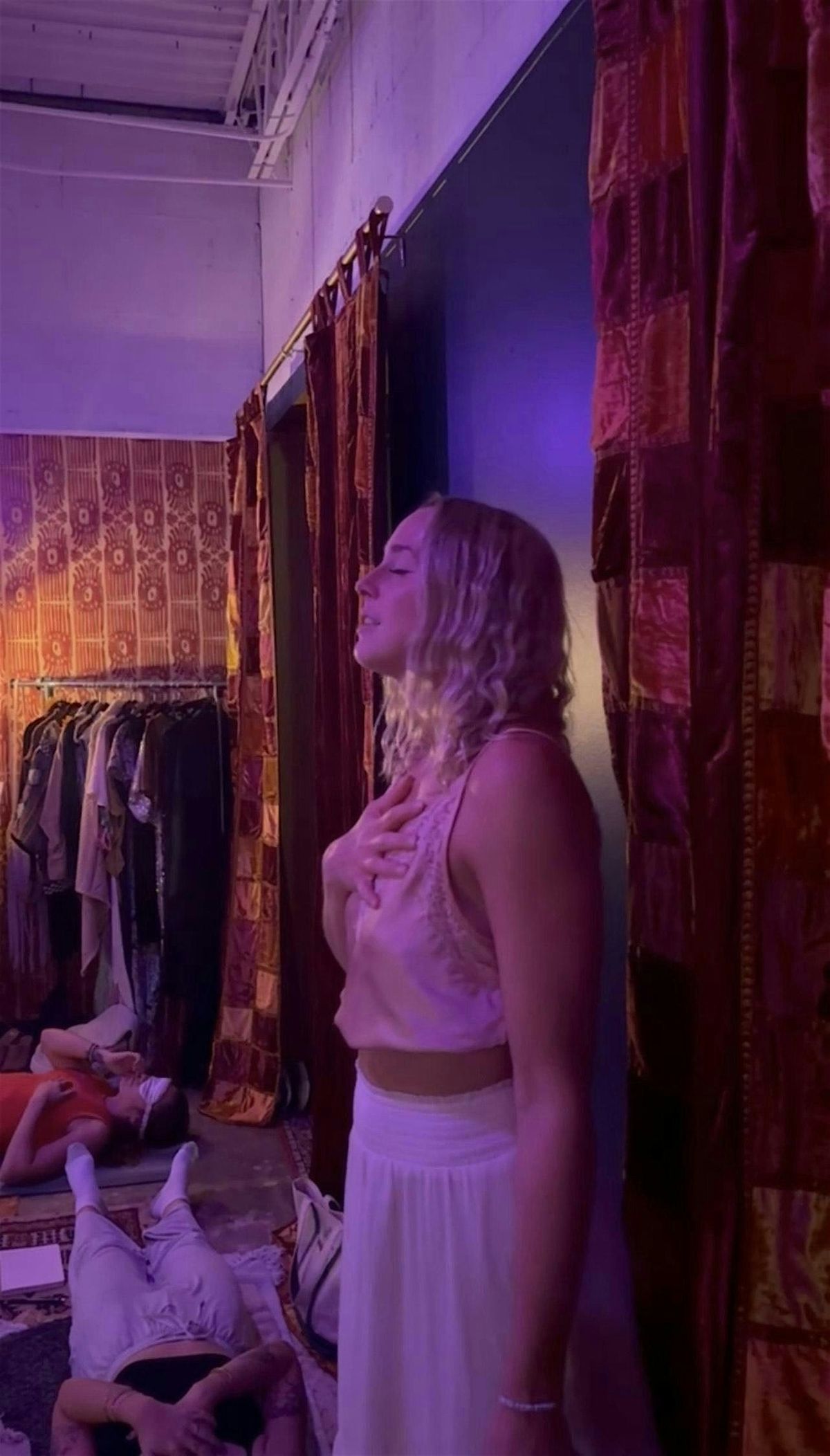- Breathwork: For most of the experience, you’ll be lying down with an eye mask (optional, extras available on site) as you are guided through a powerful, intentional breathwork journey that concludes with meditation.