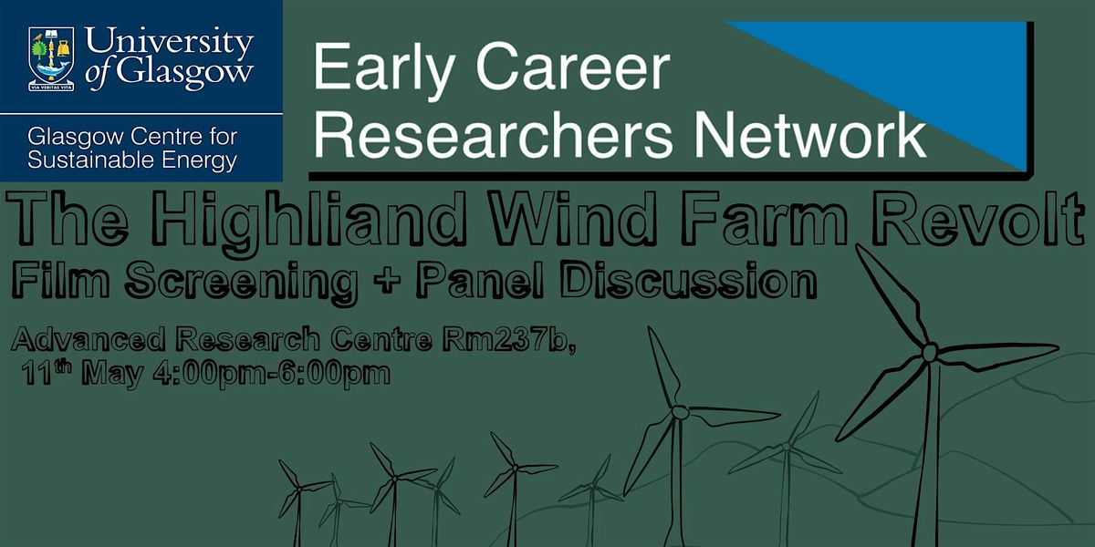 Join the Glasgow Centre for Sustainable Energy Early Career Researcher network for a screening of Lesley Riddoch's, The Highland Wind Farm Revolt, a documentary exploring how communities across the Scottish Highlands are responding to the rapid expansion of wind farm developments.
