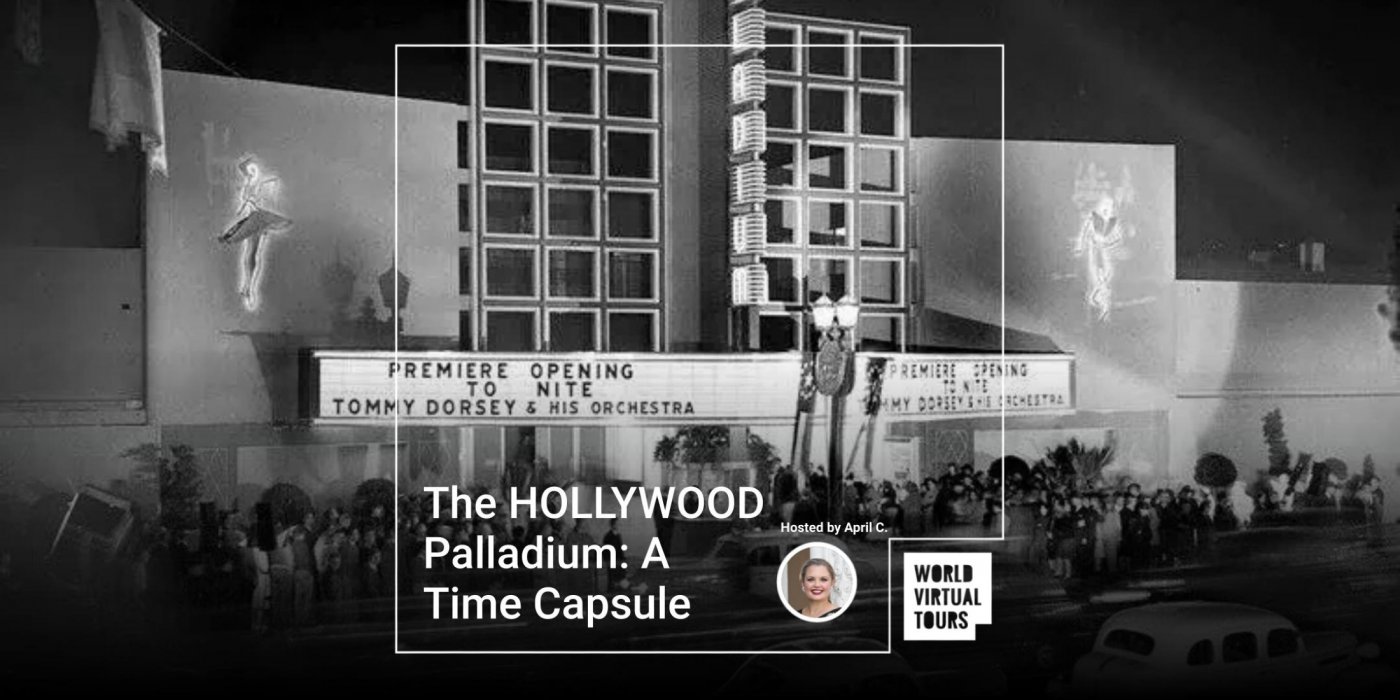 Join APRIL’S OLD HOLLYWOOD for a special virtual tour of the LEGENDARY HOLLYWOOD PALLADIUM, one of Los Angeles’ most glamorous, star-studded venues. Inspired by the personal memorabilia of former Palladium waitress LUSHIA MALEK which was donated to April’s collection, we will bring the Big Band era to life with rare photos, press passes, invitations, and insider stories you won’t find anywhere else. Discover the Palladium’s 1940 Streamline Moderne debut with TOMMY DORSEY AND A YOUNG FRANK SINATRA, its dazzling dance floor, celebrity-filled galas, wartime fundraisers, and rock ‘n’ roll concerts. You’ll learn how this iconic venue evolved with Hollywood, and see how its dramatic restoration revived its neon dancers and classic façade. Perfect for Old Hollywood lovers, music and architecture fans, or anyone who wants a taste of L.A.’s legendary nightlife, this virtual event promises an hour of glamour, nostalgia, and insider history you won’t want to miss.
