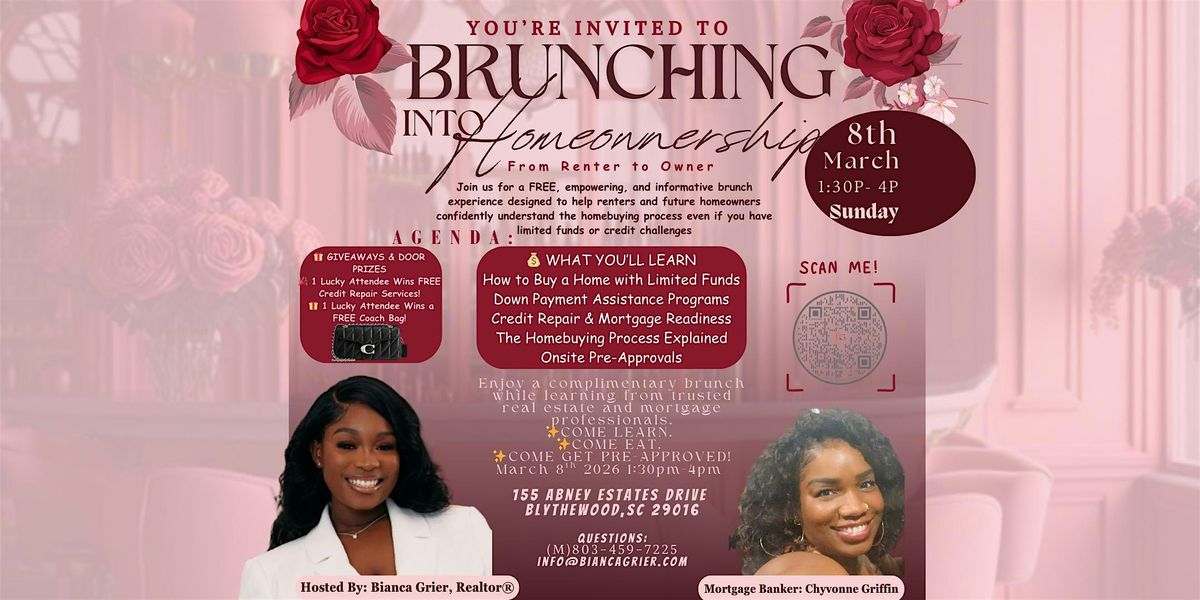 Join us for an empowering and informative FREE brunch event designed to help renters and future homeowners learn how to buy a home even with limited funds or credit challenges.