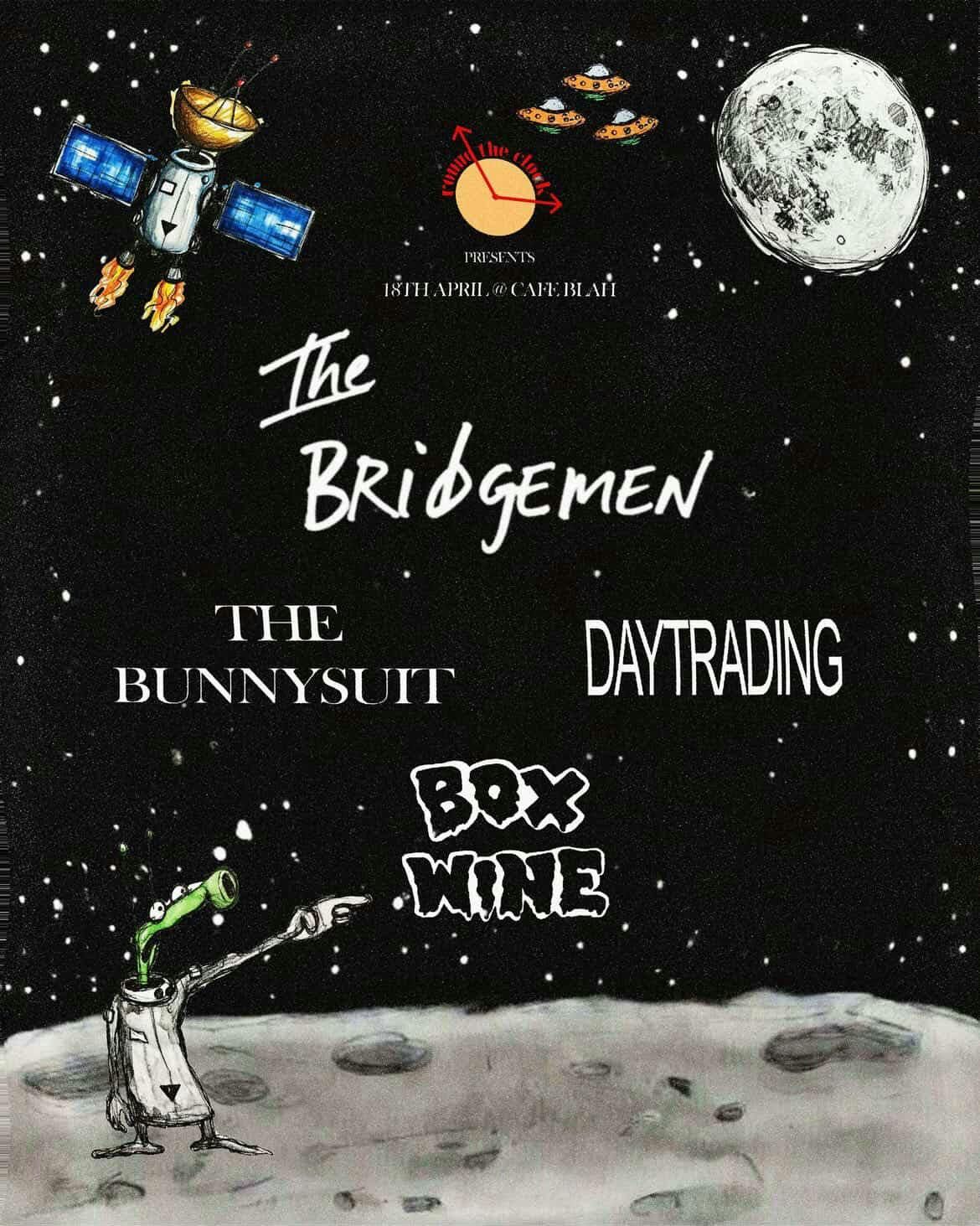 ROUND THE CLOCK PRESENTS:We're hosting another Hour of 7 featuring alternative and indie acts for the night: headlining for the show, The Bridgemen and supporting them, The Bunnysuit, DayTrading and Box Wine.