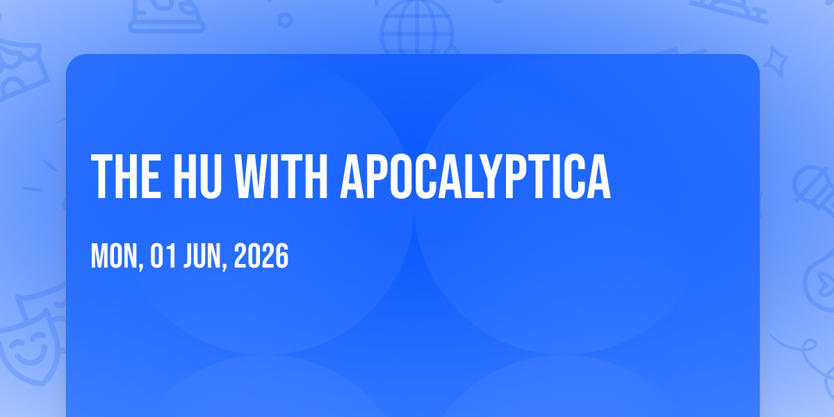 π Location: 33.2663, -116.955π Welcome to The Hu with Apocalyptica, where the impossible becomes possible and dreams take flight! ποΈ Join us at Harrah's Resort SoCal The Events Center in the heart of Valley Center, CA for an event that will redefine your expectations. π On June 1st, 2026 at 02:00 AM, witness the transformation of space and time into something truly magical. β¨ It's a curated experience combining the best of innovation, entertainment, and community spirit, creating moments that will be remembered for years to come. Whether you're a first-time visitor or a seasoned enthusiast, prepare to be amazed. π Book now to ensure your place in this unforgettable experience!