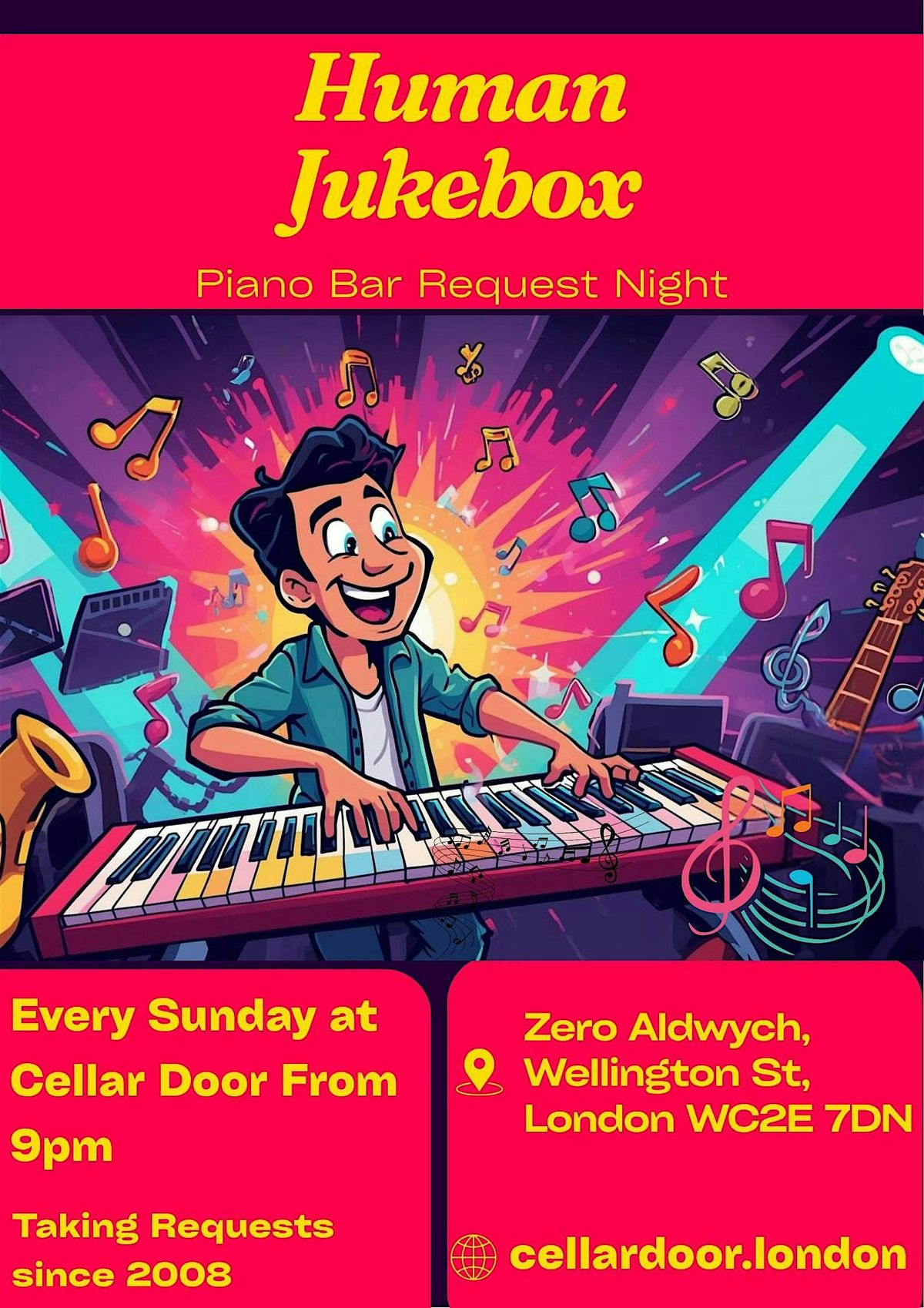 Daniel Benisty, our Human Jukebox, takes your far-flung requests and performs them as our resident pianist vocalist.