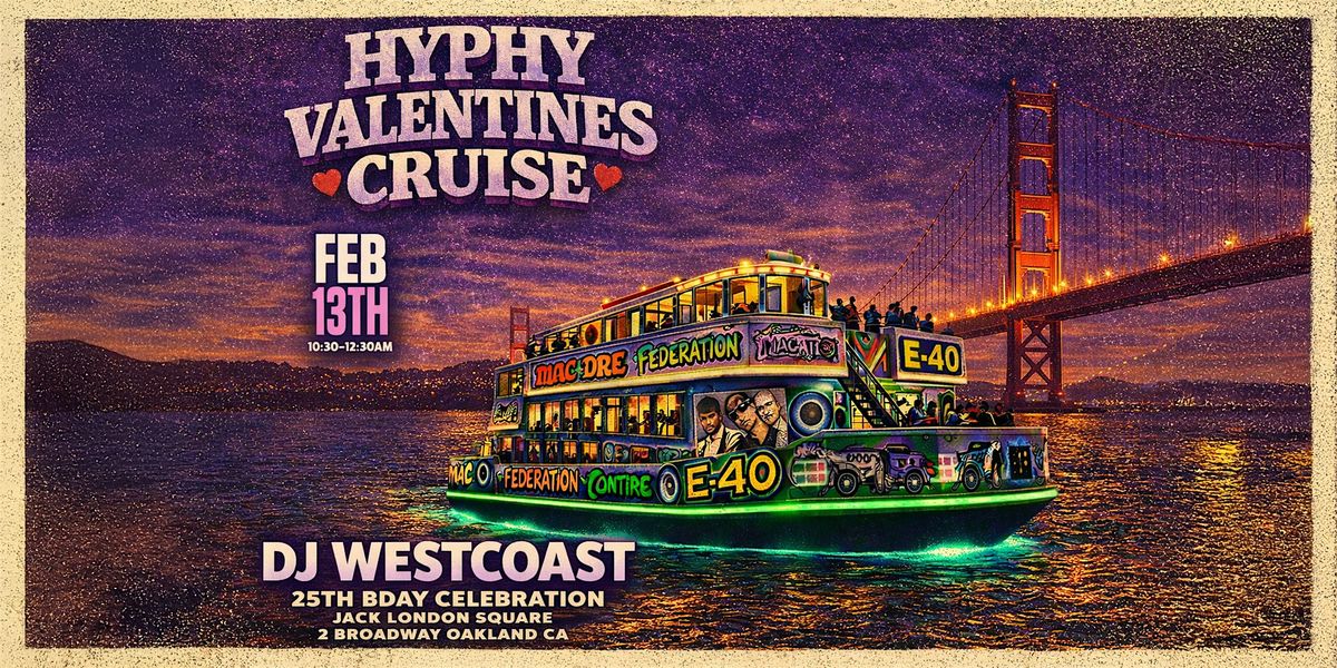 Spend Valentine’s Eve on the water with a late-night Hyphy cruise around the Bay. We’ll be departing from Jack London Square and cruising toward the Bay Bridge, taking in the city skyline while the sound system stays locked in on classic and current Hyphy hits.