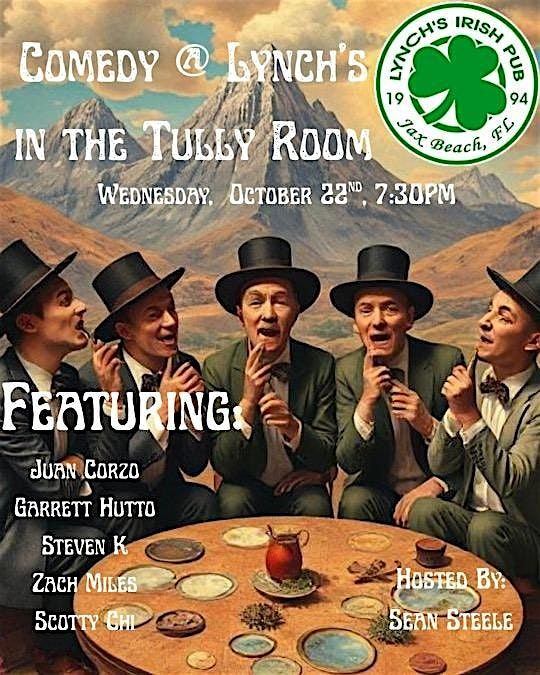 Get ready for a night of non-stop laughter at Lynch’s Irish Pub with The Infamous Five Comedy Show! Garrett Hutto, Zach Miles, Steven K, Juan Corzo and Scotty Chi have been deemed too offensive for Jacksonville Beach. Come to Lynch's on 10/22 and see for yourself what all the commotion is about. This in-person event promises to be a riot, so grab your friends and head over to Lynch’s Irish Pub for a night you won't forget. Don't miss out on the chance to enjoy some great comedy and good company!