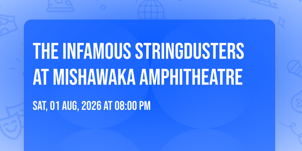 β¨ Discover the extraordinary at The Infamous Stringdusters at Mishawaka Amphitheatre, where magic meets reality in ways you've never imagined! ποΈ Set in Mishawaka Amphitheatre nestled in bustling Bellvue, CO, this event promises to be a landmark occasion. π Taking place on August 1st, 2026 at 08:00 PM, it's going to create an atmosphere where every moment becomes a cherished memory. π Immerse yourself in an experience crafted with attention to every detail, designed to surprise and delight at every turn. They have worked tirelessly to ensure this event exceeds all expectations, bringing together elements of entertainment, innovation, and pure joy. π Don't miss your chance to be part of this remarkable journey!